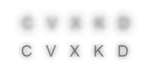 Representation of how I now see an eye chart without glasses (right eye mostly). There’s the main line with quite a bit of smokiness and blurriness, and a duplicate line above it with much more smokiness. Yes, even with one eye closed I have double vision out of the other.