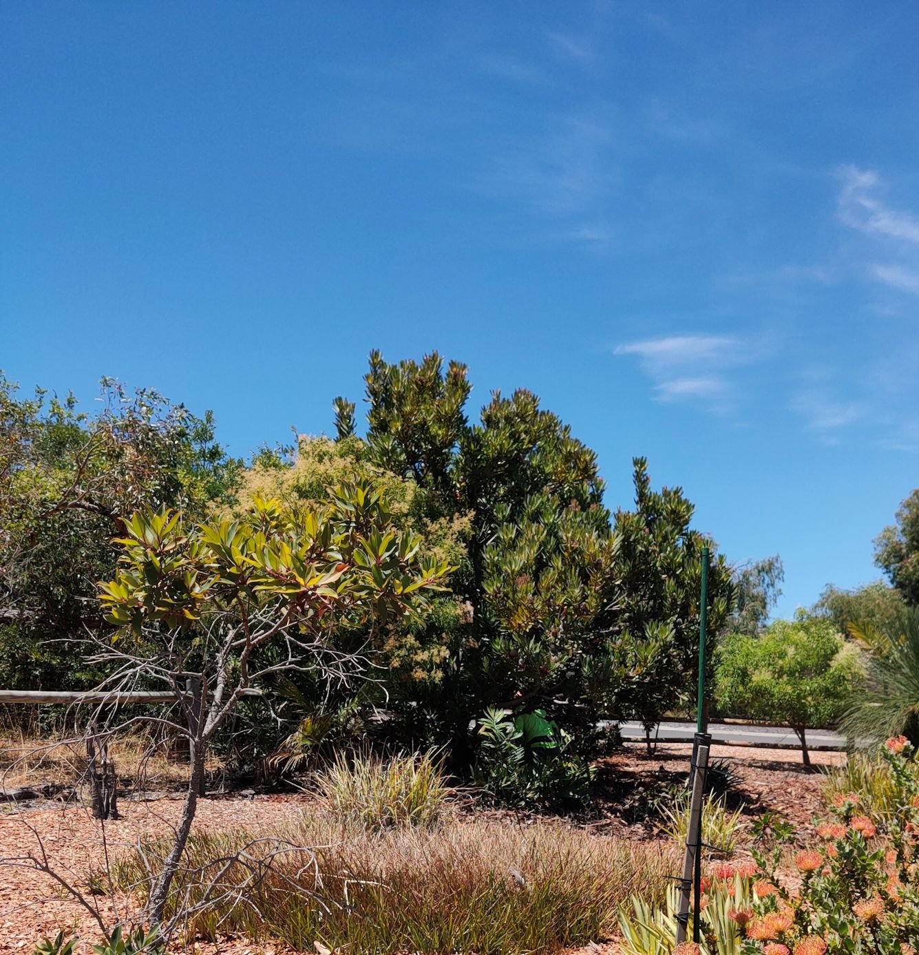 We had a dead protea (not sure of the variety) and a Phoenix palm that needed to be removed, as well as peppermint tree that needed to be trimmed and balanced, and a massive protea in the garden that needed to have its lower branches removed. Today was the day—4 blokes, two trucks (one with a wood chipper trailer, the other with a cherry picker), a van, and several chainsaws. An hour or so later and they were all done.