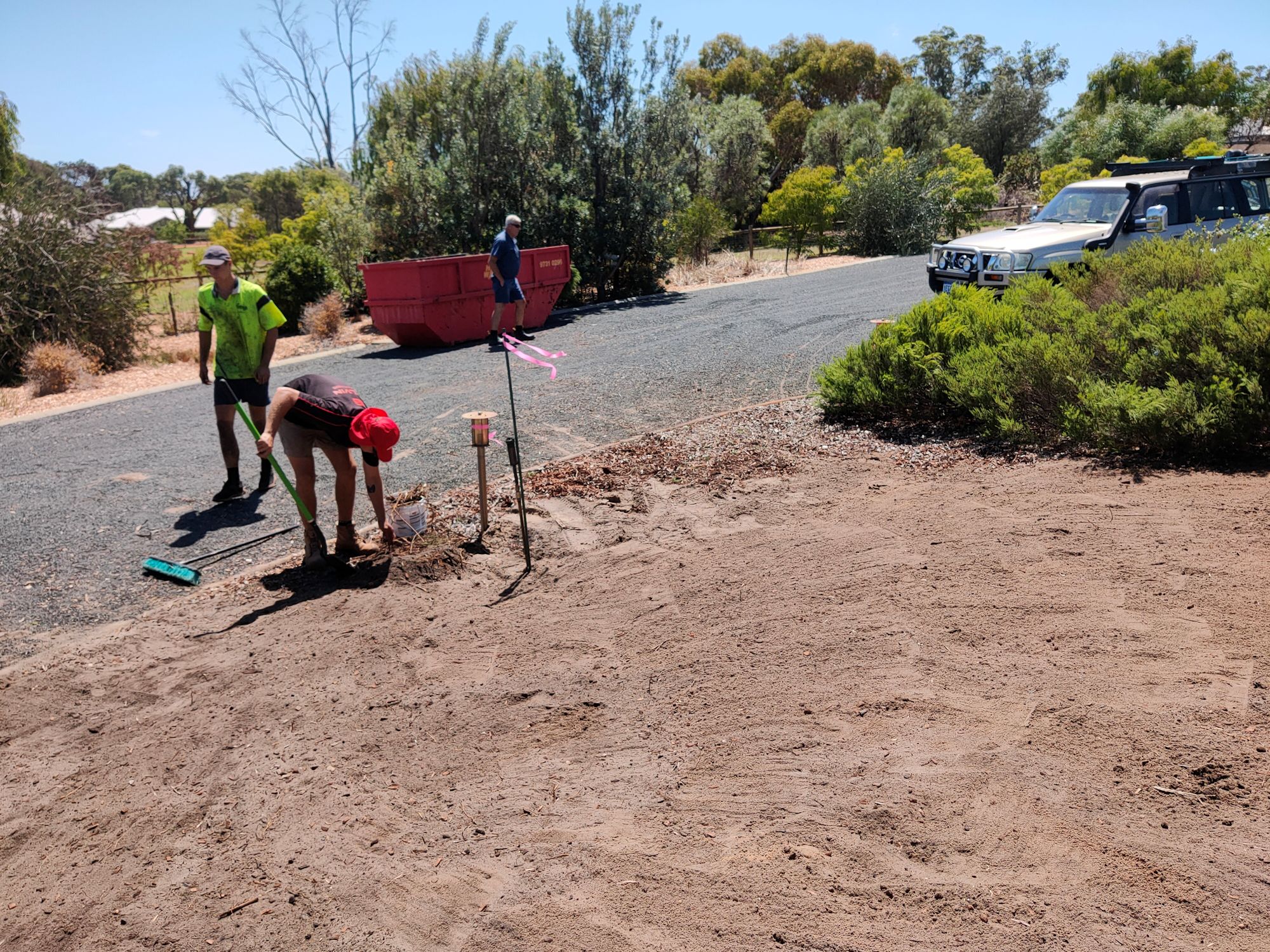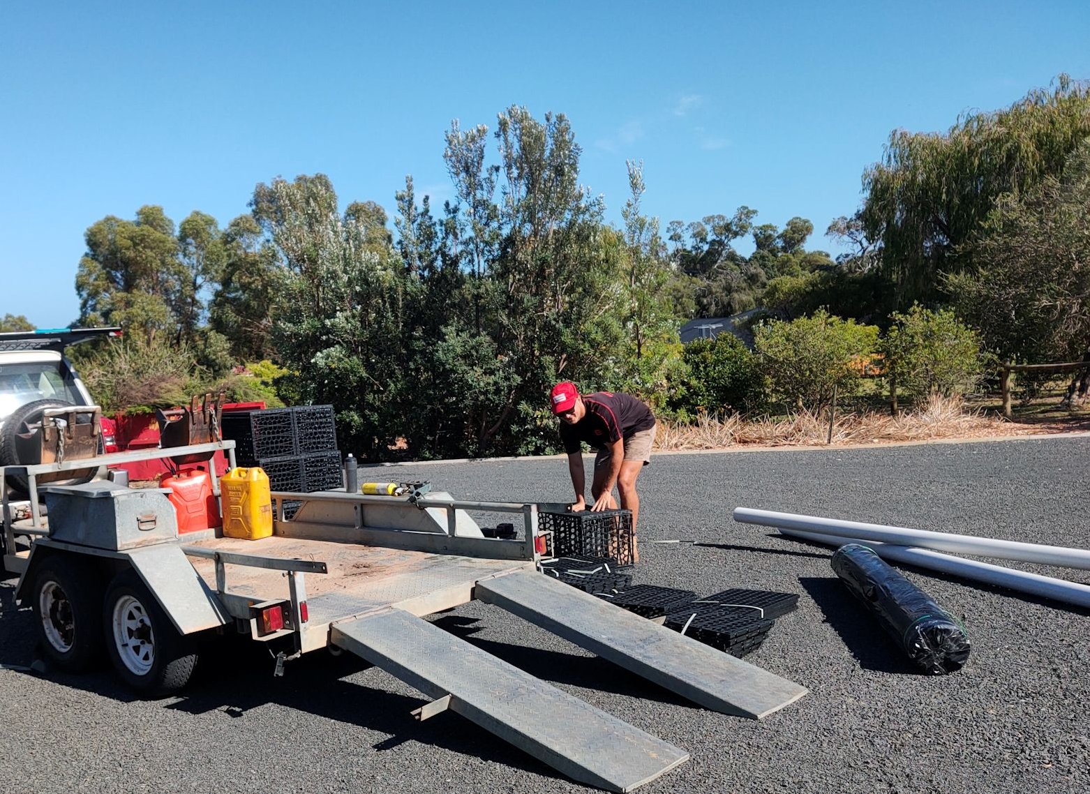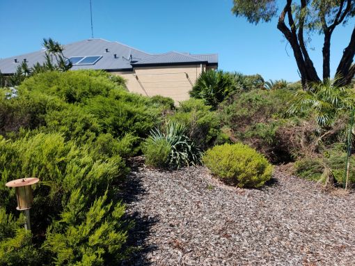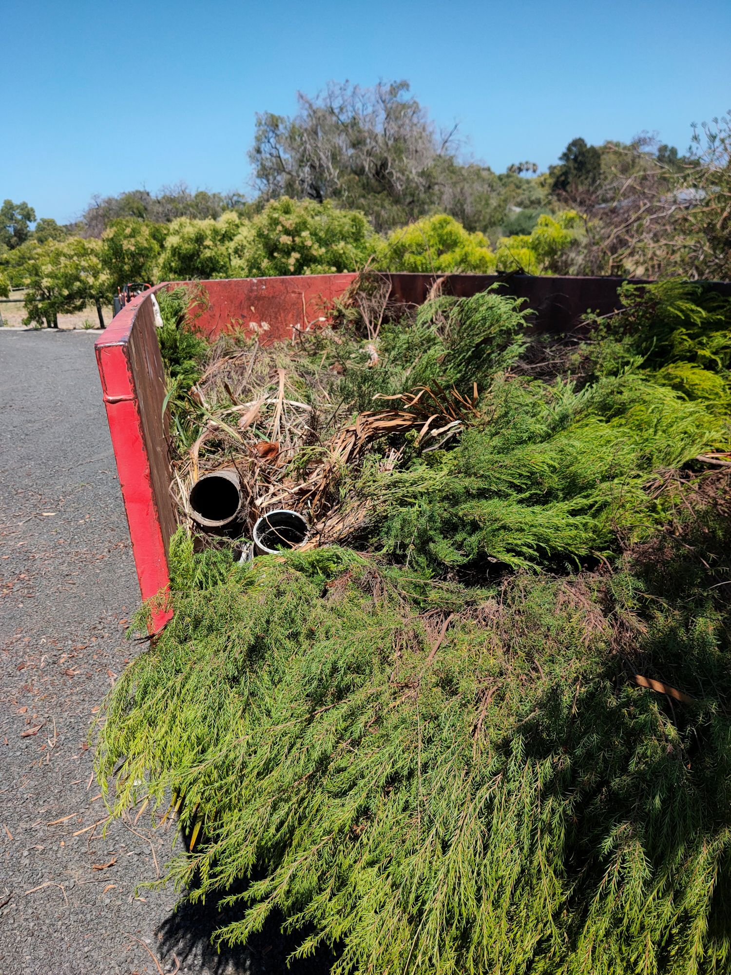 The plumbers came this morning to clear the vegetation and install the new leach drains. I didn’t have to have the other drains found and pumped because they could be capped and left to dry out on their own over time. New pipework from the septic would be used for the two new drains. With a digger and 3 people, it was all done and cleaned up within 4 hours! In addition to the cost (several thousand dollars), I also had the cost of a 5 cubic metre general waste skip bin ($260 for 6 days), but no extra cost for pumping out the old leach drains. The plants can suck on those for a few more months.