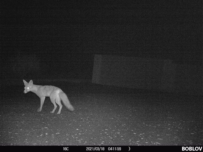 Night one was promising—a rabbit went past the trailcam’s location! I moved the camera around various locations on our 0.4 ha (1-acre) property over the next week to find the optimal position. I captured LOTS of moving vegetation and clouds and not much else. But I did capture a fox! In fact, over the 3 weeks, the trailcam ‘caught’ the fox about 6 times, at various times of the night, and always crossing our large front driveway in much the same place each time.