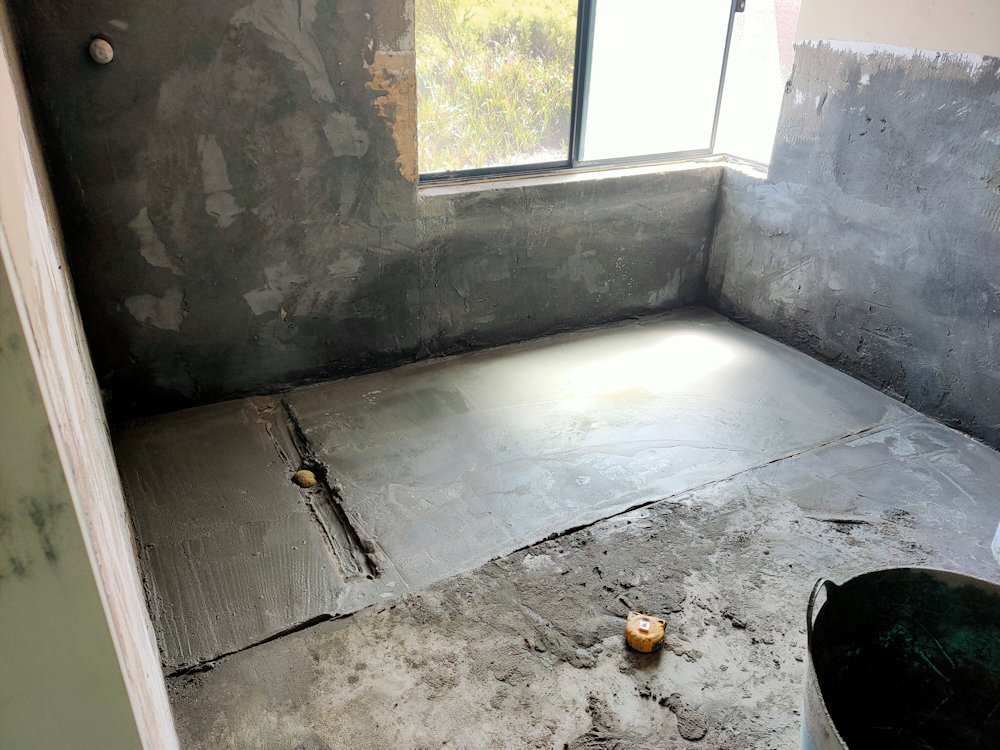 A very quiet day today. The PM and tiler both turned up early, and the tiler got on to filling and screeding the floor and wall area for the shower. But concrete (or whatever he uses) has to dry so he was done and gone by mid-morning. He’ll be back later today to do a bit more, then it will all dry over the weekend. He’ll start the waterproofing on Monday and that will take 3 days because I want 3 coats and up much higher on the walls than the Australian standard. He told me he’s not just waterproofing the shower area, but also the walls, floors and window ledges where water could splash, and the back wall where the bath used to be, and into the main bathroom area too. Each coat has to dry, so 3 coats = 3 days before he can start tiling. He can’t start tiling earlier from the toilet out otherwise he could be out in the measurements—the tiling has to start from the where the shower screen will go, which is why he can’t do anything until the waterproofing is all done. In my chat about our 3 previous experiences with bad waterproofing and bathrooms, I found that he and I are very much on the same page about getting the waterproofing done right the first time, because it’s way to expensive to fix later. An extra day for a 3rd coat? in the scheme of things, it’s a small price to pay.