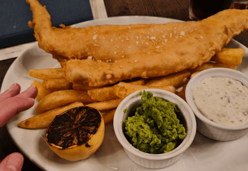 Many of our group of around 20 had fish and chips with mushy peas at a pub around the corner from the hotel, because of course you do on your first night in England! (it was HUGE and looked great, but unfortunately, the fish [haddock] was way overcooked and very dry)