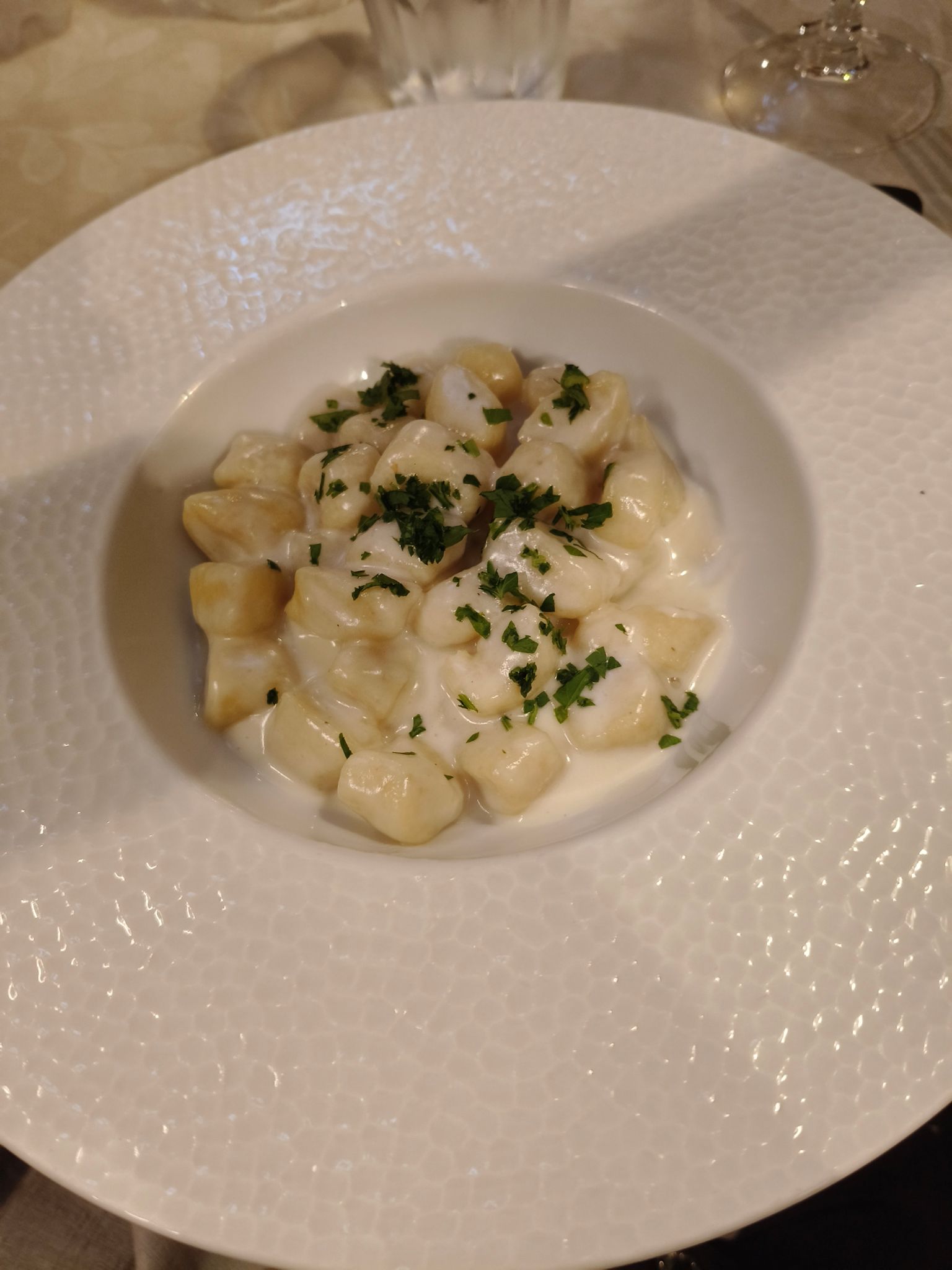 Bellagio, like many towns here, is full of steps, so up the stairs we went and found a nice little place to have lunch. I had gnocchi, which I’ve rarely eaten because my first experience was pretty ordinary. This was absolutely delicious. The others had the tagliatelle that they said was equally as delicious. But it wasn’t long before the rain came bucketing down! Even though we were outside under an awning, the water came through a little, so we donned our new ponchos again to eat in relative dryness! With our meal, we had fresh-baked focaccia (more like a pizza crust than the commercial focaccia we get in Australia) and a garden salad, followed by creme brulee with a pistachio-flavoured custard.