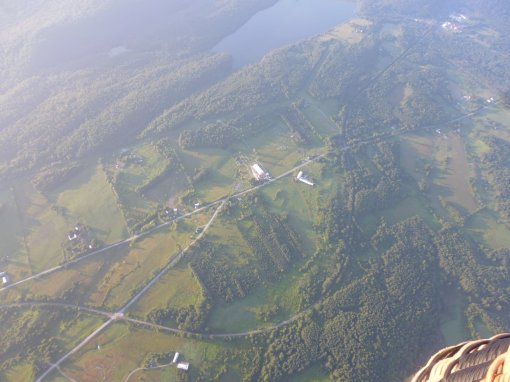 After an hour, we’d travelled some 10 miles, and it was time to land. But where to land? The company has permission to launch and land at several sites, but today the winds took us away from those, so we found a prospective field next to a house and headed towards it. The owner had spotted us (heard the burners?) and came out and was taking photos of us. Jeff, the pilot, yelled out asking if we could land in the field. He said yes, and in we came. We were told to bend our knees and to expect two or three small bounces. We got none of that — you could hardly feel the landing at all!
