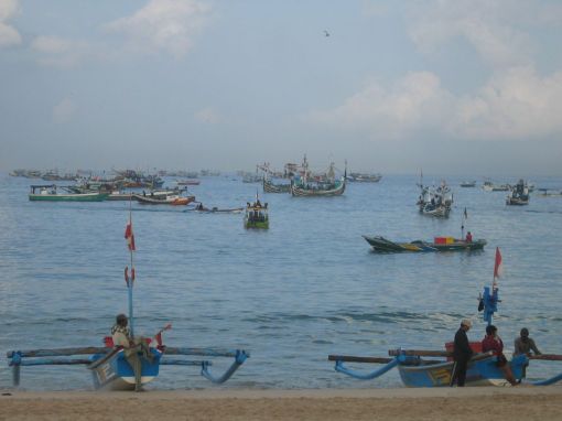 After the Jimbaran markets we headed to Jimbaran Bay where the fish markets are. Again, there was no smell of rotting fish in the markets, which is REALLY surprising as there are no concrete floors that get washed out each day. Heinz spoke at length on the overfishing in Jimbaran Bay and we watched as various catches came in and the fish were pulled from the nets and put into baskets and taken into the fish market.