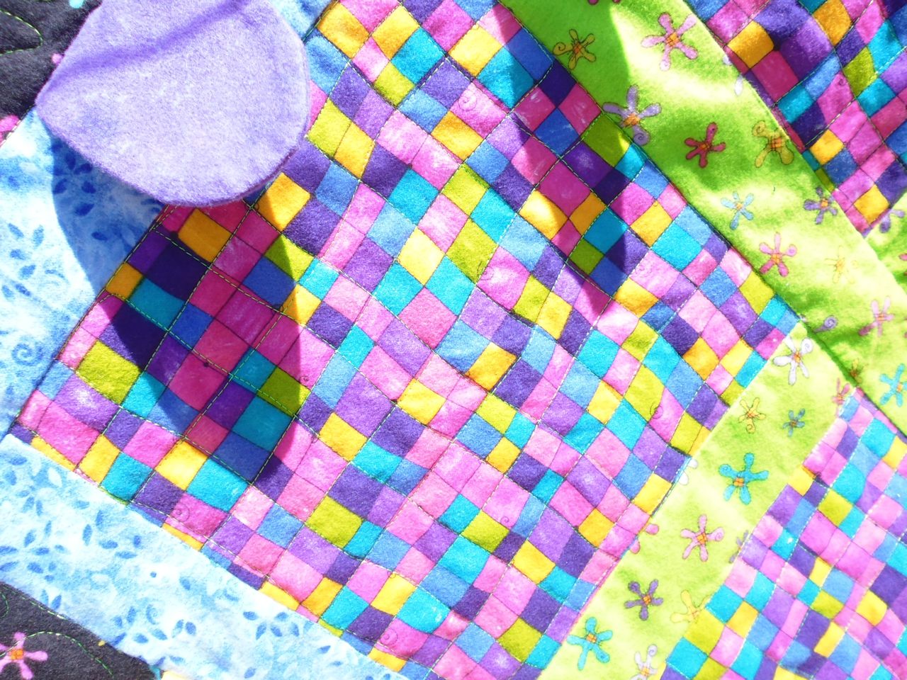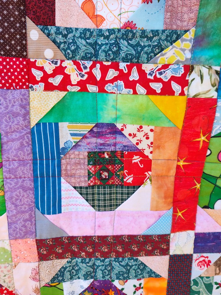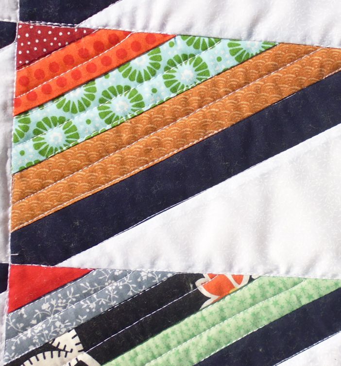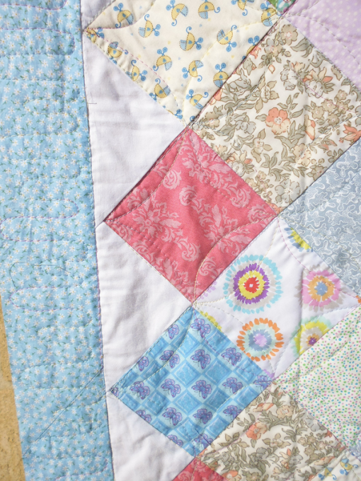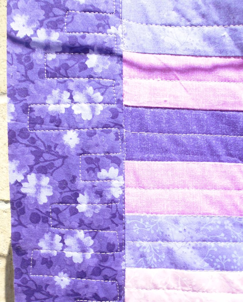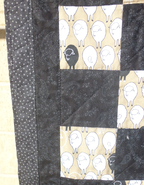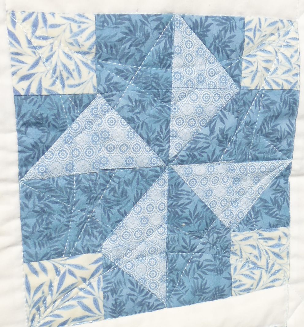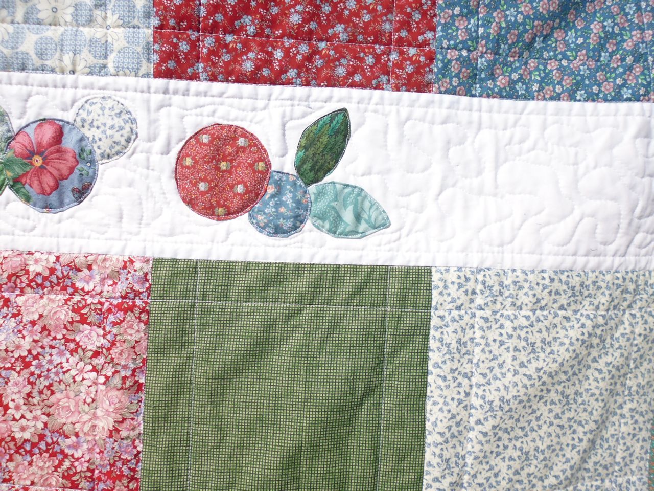 This quilt was similar to #400 (above), with all that candlewicking. As with #400, I stitched around each of the main embroidery lines, then echoed them, then did MacTavishing in the blocks to make the embroidered areas ‘pop’.