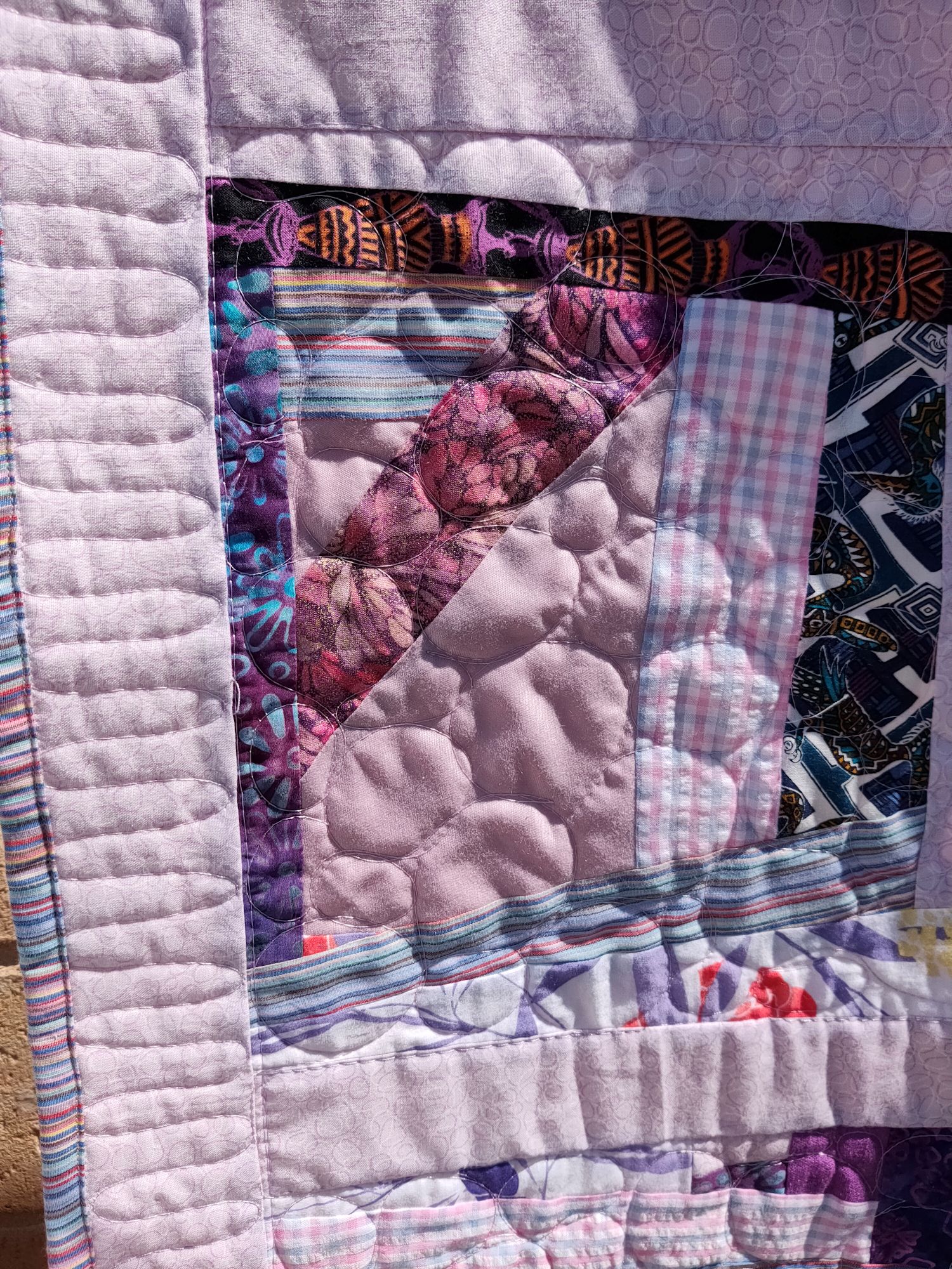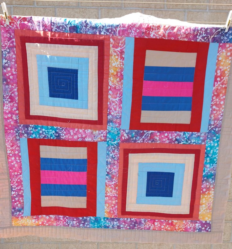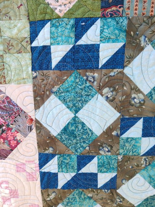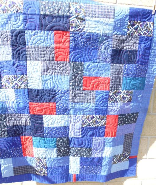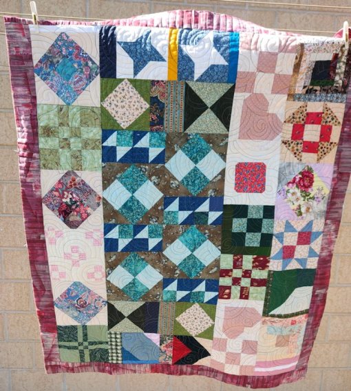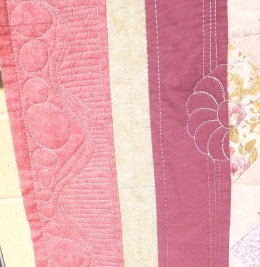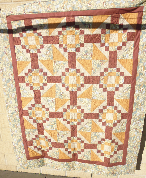 I’ve been busy with all sorts of things in the past couple of months, so while I’ve quilted 15 quilts and taken photos of them, it wasn’t until today that I got around to processing the photos and putting them up on this blog. Because I’ve forgotten what I did and what threads I used for most of them, I’ve put all into this one post. I’ve only made comments for any that were exceptional for some reason.
