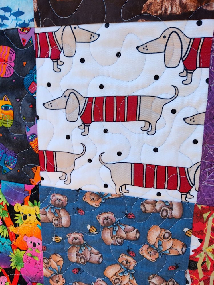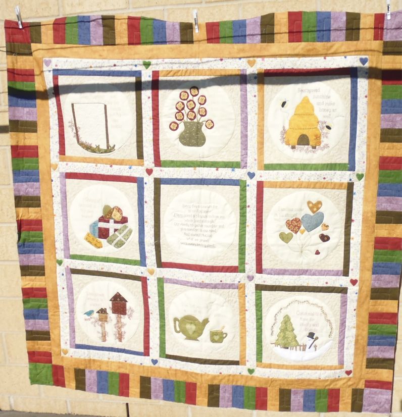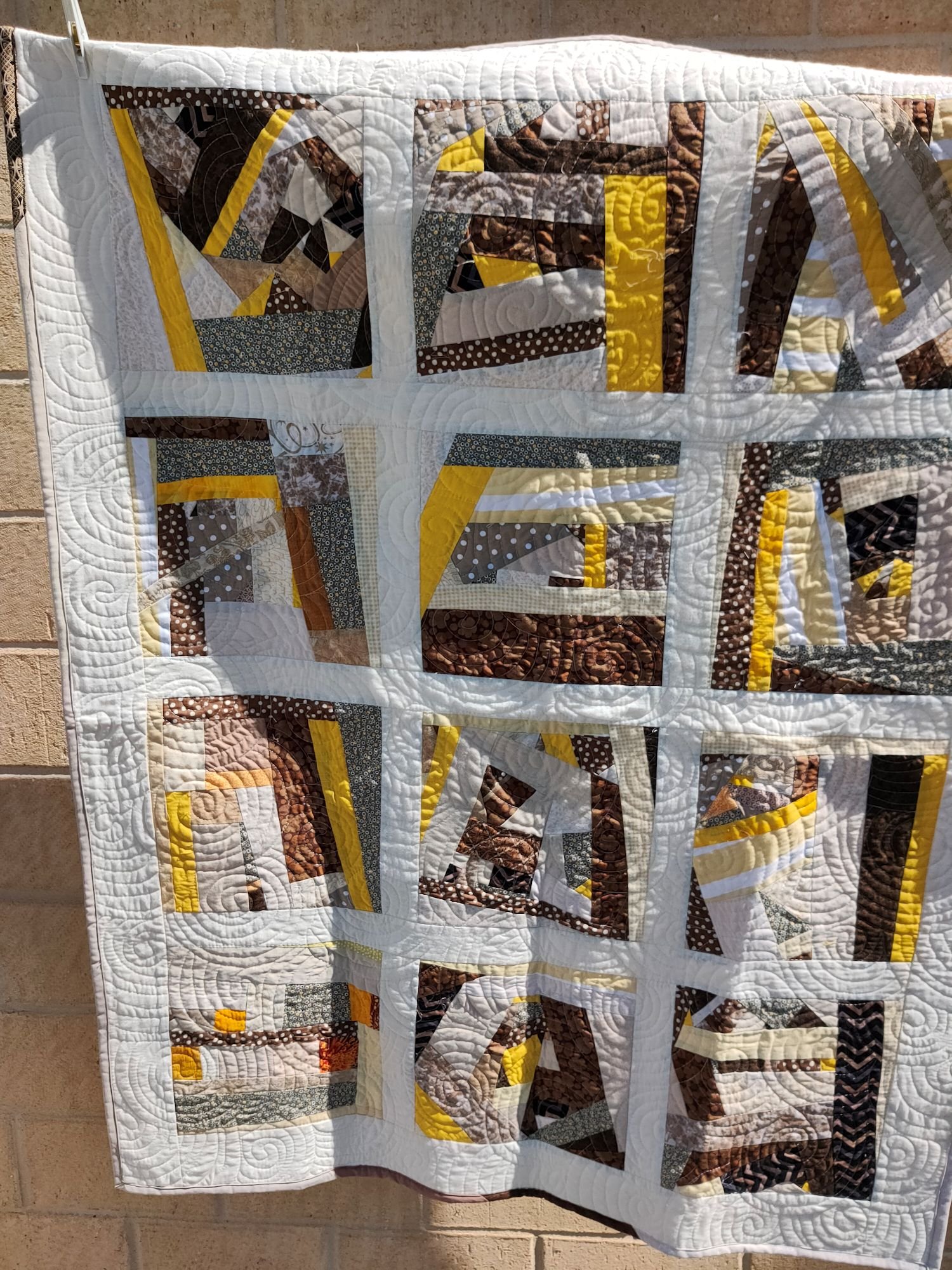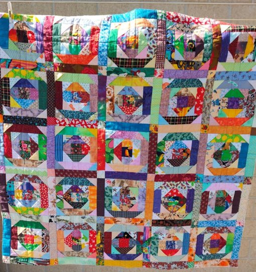 I’ve been busy with all sorts of things in the past couple of months, so while I’ve quilted 15 quilts and taken photos of them, it wasn’t until today that I got around to processing the photos and putting them up on this blog. Because I’ve forgotten what I did and what threads I used for most of them, I’ve put all into this one post. I’ve only made comments for any that were exceptional for some reason.